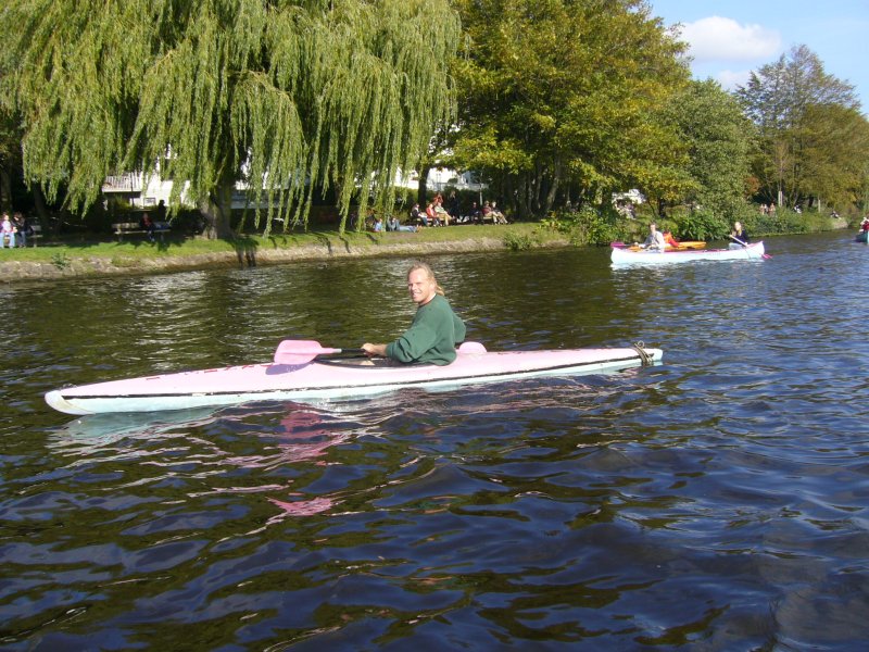 Das sportliche 1er Kajak wird mit einem Doppelpaddel gefahren und gelenkt. Man sitzt auf einem flachen Sitz auf Höhe der Wasseroberfläche und kann sich durch eine Spritzdecke vor Spritzwasser schützen. Vor allen Dingen für Paddler mit bereits ersten Erfahrungen ist dieses Boot eine gute Möglichkeit die Alster mit etwas schnellerem Tempo zu erkunden. Aber auch Ungeübte können sich ohne weiteres nach ein paar Minuten Einübung mit dem einer Kajak gut zurecht finden.