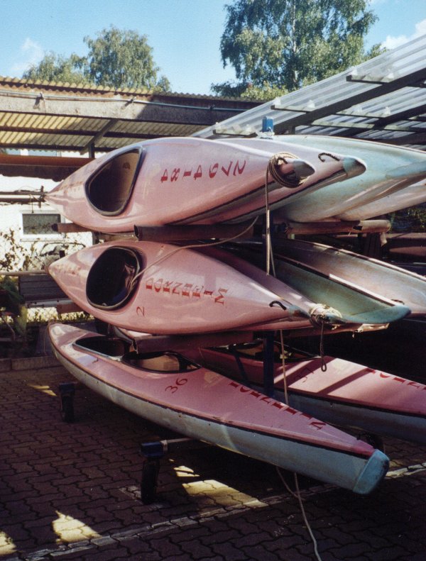In unserer großen Bootslagerhalle können über 250 Kanus, Kajaks, SUPs und Faltboote eingelagert werden.