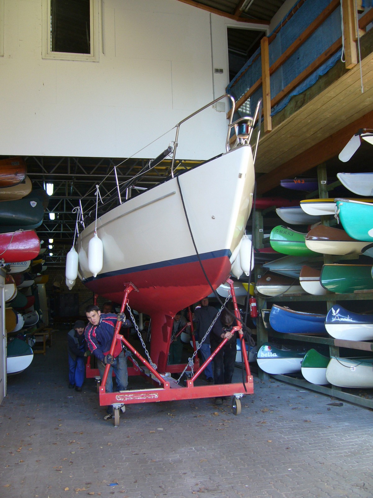 Mit den rollfähigen Gerüsten können Sie Ihr eingelagertes Boot auch aus den oberen Reihen leicht heraus bekommen. Sollten Sie dabei einmal Hilfe benötigen, dann sprechen Sie bitte einen unserer Bootsleute an. Es wird Ihnen gerne geholfen.