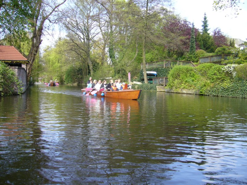 Dieses Mannschaftsboot aus Mahagoni-Holz kann mit bis zu 13 Personen gefahren werden. Auch der Steuermann (ganz hinten) kann sitzen und mit einer auch für Anfänger leicht zu bedienenden Steuerung das Kanu auf Kurs bringen. Dieses lange und schlanke Boot ist von seiner Bauart angelehnt an die bekannten Drachenboote, mit denen Rennen gefahren werden. Unser Drachenkanu ist allerdings so konzipiert, dass auch Ungeübte schnell und sicher darin unterwegs sein können. Das Boot ist nahezu kentersicher und garantiert viel Spass bei sportlicher Betätigung. Dieses Kanu ist das geeignete Boot für einen Betriebsausflug oder eine Geburtstagsfeier mit Tour auf der Alster und den Hamburger Kanälen. Bei Bedarf können Schwimmwesten oder wasserdichte Stautonnen zusätzlich günstig gemietet werden.