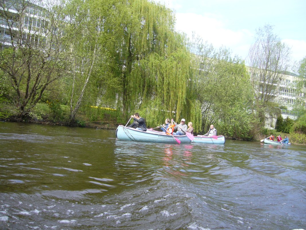 Das Hamburger Kanu bietet Platz für 4 bis 6 Personen. Es hat zwei Sitzbänke aus Holz in der Mitte auf denen vier Personen sitzen können. Auf dem hinteren Platz sitzt der Steuermann, der mit Hilfe seines Paddels das Boot lenkt. Bei Bedarf kann Ihnen der Bootsmann die Technik gerne zeigen. Dieses Kanu ist sowohl für Anfänger als auch für erfahrene Wassersportler das geeignete Boot für eine entspannte Kanutour auf der Alster und den Hamburger Kanälen mit Freunden, Kollegen oder der Familie. Bei Bedarf können Schwimmwesten oder wasserdichte Stautonnen zusätzlich günstig gemietet werden.