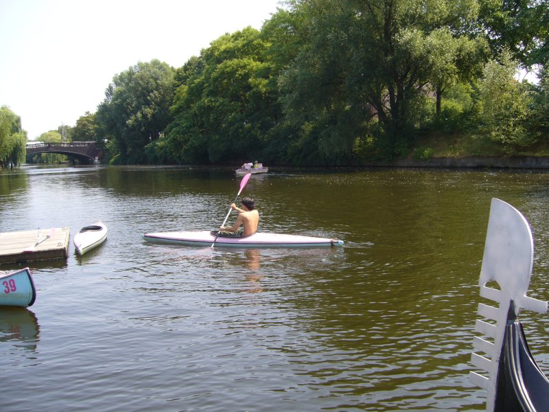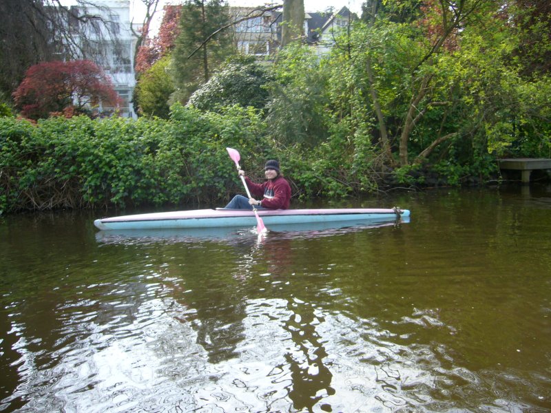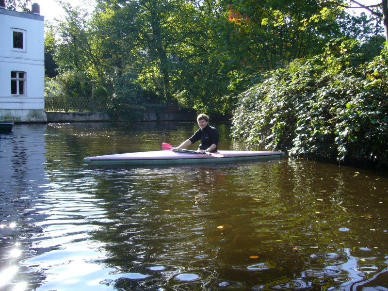Das sportliche 1er Kajak wird mit einem Doppelpaddel gefahren und gelenkt. Man sitzt auf einem flachen Sitz auf Höhe der Wasseroberfläche und kann sich durch eine Spritzdecke vor Spritzwasser schützen. Vor allen Dingen für Paddler mit bereits ersten Erfahrungen ist dieses Boot eine gute Möglichkeit die Alster mit etwas schnellerem Tempo zu erkunden. Aber auch Ungeübte können sich ohne weiteres nach ein paar Minuten Einübung mit dem einer Kajak gut zurecht finden.