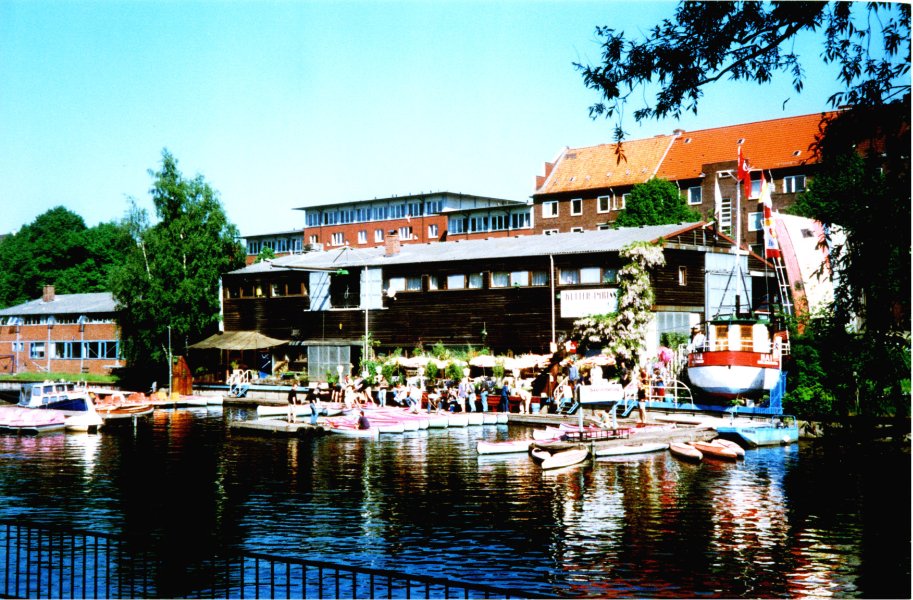 Der Werftbetrieb musste aus wirtschaftlichen Gründen Anfang der 1990er Jahre eingestellt werden, so dass das Standbein der Bootsvermietung und der Bootslagerung in den Mittelpunkt rückte. Um ein weiteres Standbein aufzubauen, eröffnete der „Kutterimbiss“ als gastronomisches Zusatzgeschäft Mitte der 90er Jahre. Untergebracht war der Imbiss in einem alten Fischkutter, der in der Mitte zersägt und dessen Bug aufrecht in den Himmel ragend aufgestellt wurde.